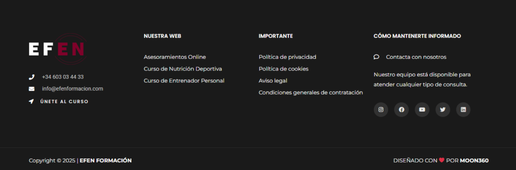 EFEN es tu escuela de formación online en entrenamiento y nutrición. Encontrarás todo lo que necesitas saber sobre estos sectores y lo más importante, aprenderás a aplicarlo de forma inmediata.
